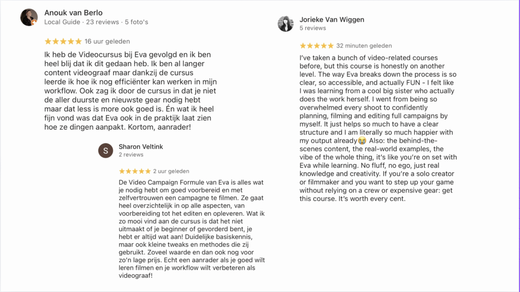 “Thank you Eva for making a course that is so straight to the point, jam packed with information on how to genuinely improve your skills, mindset and so much more.
